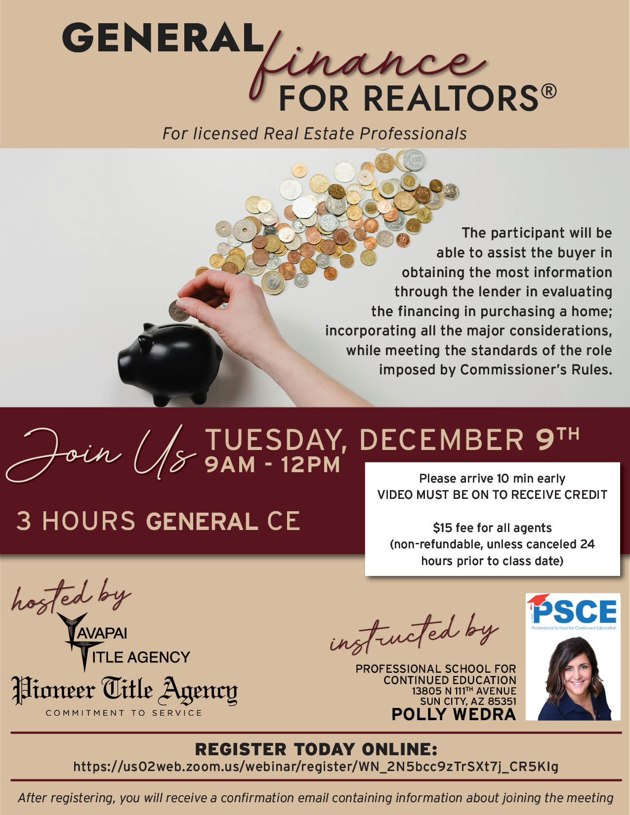 CLASS OFFERED THROUGH PIONEER TITLE AGENCY NOT THROUGH PAAR.